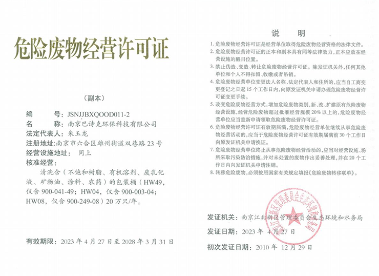 南京巴詩克環(huán)保科技有限公司,座落在江蘇省南京市化學(xué)工業(yè)園區(qū)紅山精細(xì)化工園(六合區(qū)),交通便利,工業(yè)發(fā)達(dá),環(huán)境優(yōu)美。公司注冊資金500萬元,占地面積20多畝。項(xiàng)目總投資5000萬元,建成廠房及附屬設(shè)施9000平方米,新購置設(shè)備224臺(tái)套。項(xiàng)目全部建成投產(chǎn)后可實(shí)現(xiàn)年銷售收入6500萬元、利稅6···